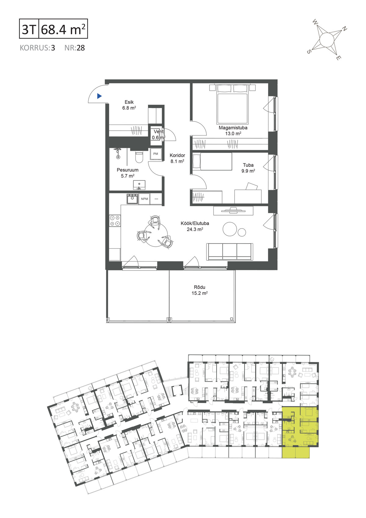 Kõik korterid on varustatud kvaliteetse köögimööbliga, näidiskorteri hind sisaldab kogu sisustust.