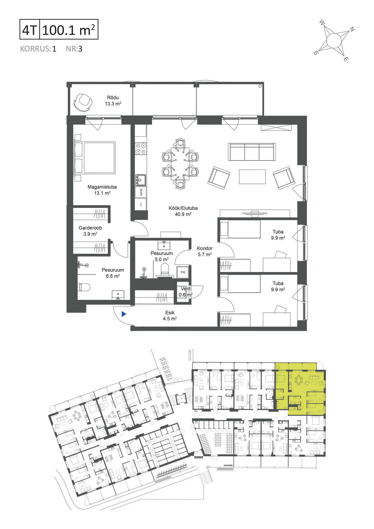 Kõik korterid on varustatud kvaliteetse köögimööbliga, näidiskorteri hind sisaldab kogu sisustust.