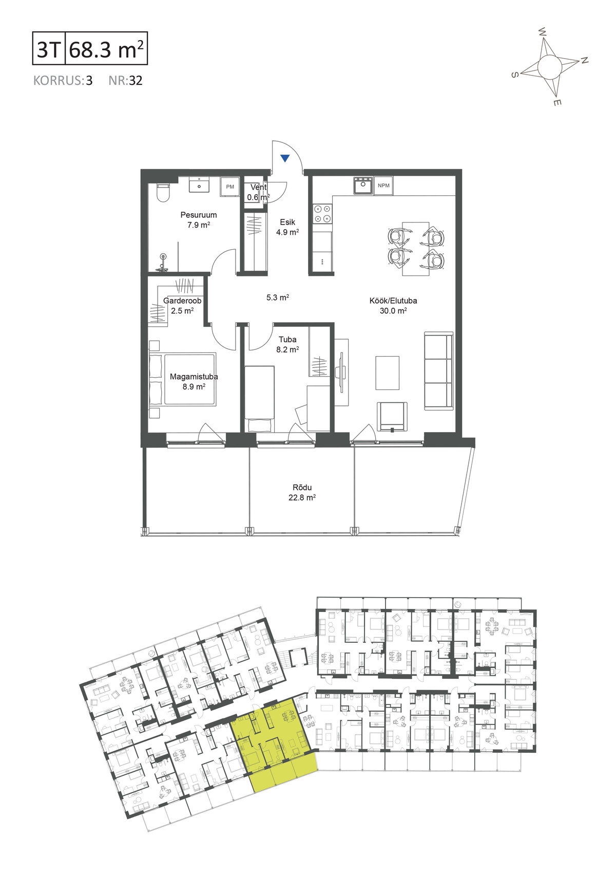 Kõik korterid on varustatud kvaliteetse köögimööbliga, näidiskorteri hind sisaldab kogu sisustust.