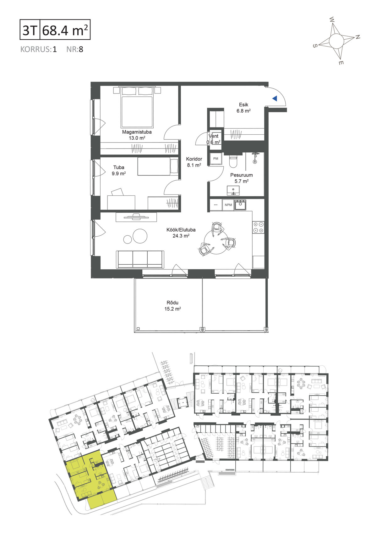 Kõik korterid on varustatud kvaliteetse köögimööbliga, näidiskorteri hind sisaldab kogu sisustust.