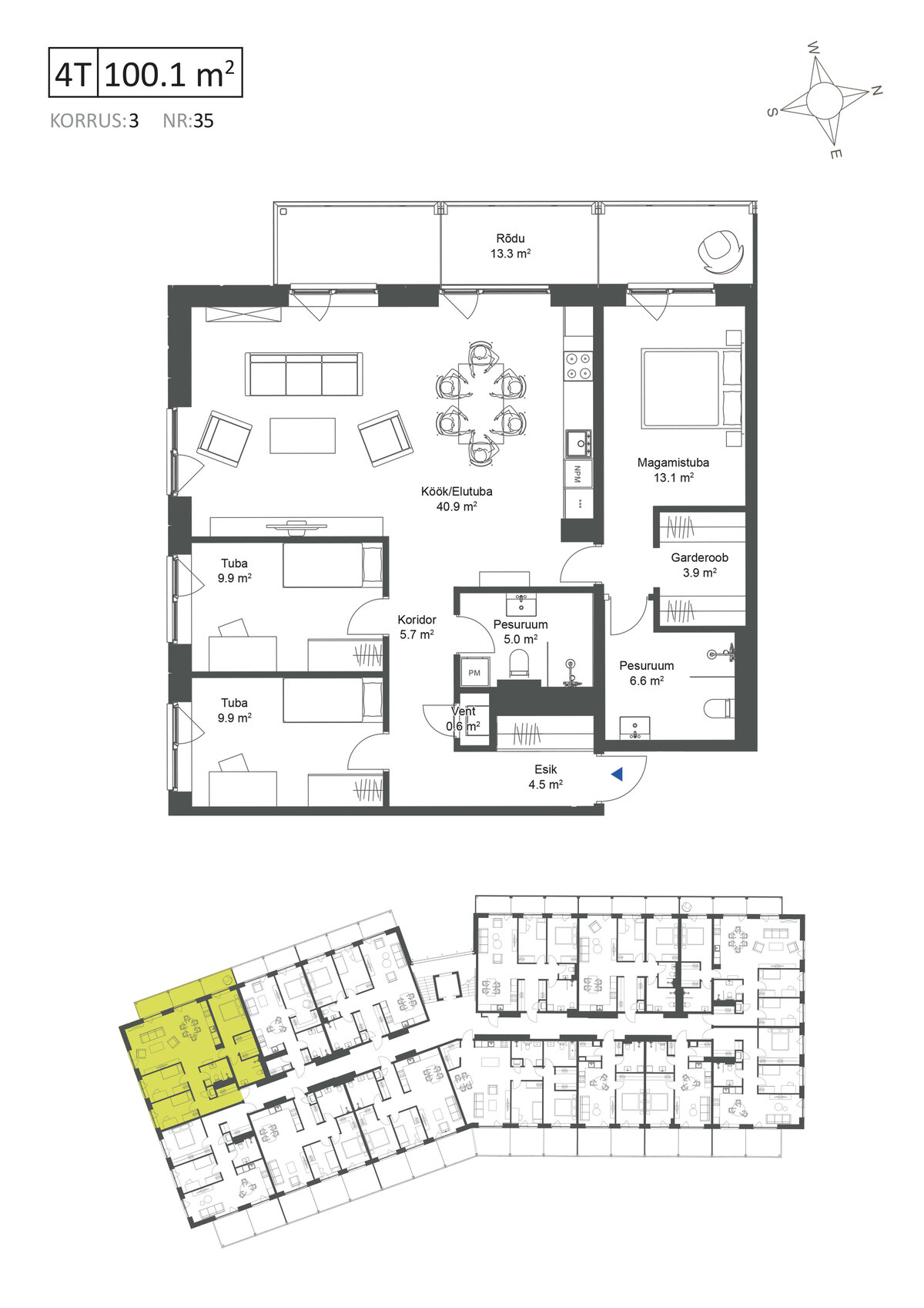 Kõik korterid on varustatud kvaliteetse köögimööbliga, näidiskorteri hind sisaldab kogu sisustust.